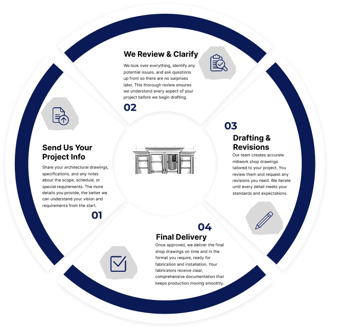 When you partner with Mavericks Millwork Drafting, you receive more than just drawings. You gain a dedicated partner committed to your project’s success. Our combination of technical expertise, industry experience, and customer-focused approach ensures your shop drawings contribute to smooth fabrication and flawless installation.