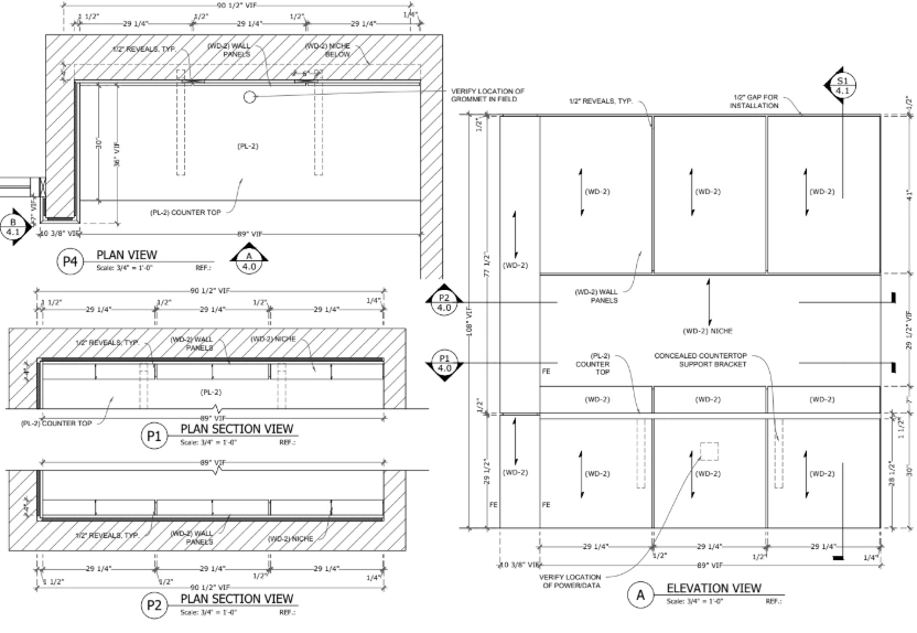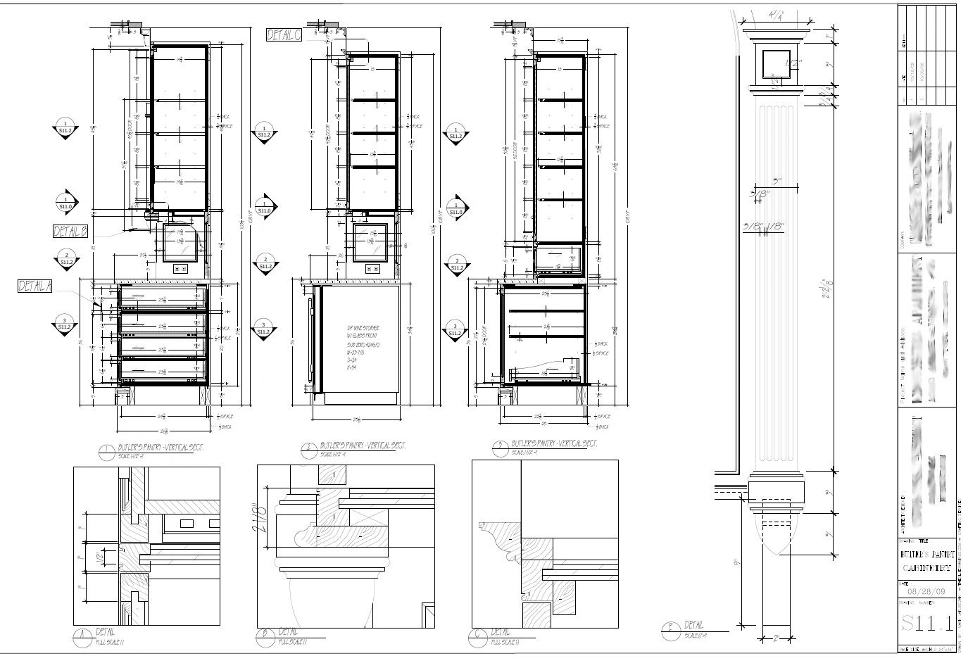 Architectural drawings provide the overall design intent and vision for a space, showing where millwork should be located and its general appearance. They’re created for design communication and permit applications. Millwork shop drawings, on the other hand, are highly detailed technical documents created specifically for fabrication and installation. They include precise dimensions, joinery details, material specifications, hardware locations, and assembly instructions that fabricators need to actually build the millwork. Think of architectural drawings as the “what and where,” while shop drawings are the “how to build it.”